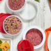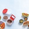 Setul conține 4 forme și un capac superior pentru a economisi spațiu în frigider sau congelator.
